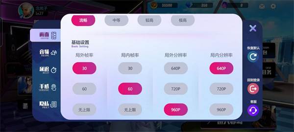 画面推荐看配置不过局内帧率一定要调无上限,不然操作时的突然的掉帧,会影响一整局的评分,在下也是深有体会呀。