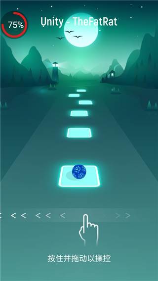 游戏的核心玩法是玩家控制一个小球,在屏幕上根据音乐的节奏左右滑动。每首歌的音符会在屏幕上呈现出来,玩家需要及时拖动小球在音符之间移动,确保击中每个音符的同时避免偏离轨道。这个设定看似简单,但实际操作起来却充满挑战,尤其是随着难度的逐渐增加,操作的节奏也会变得越来越快。