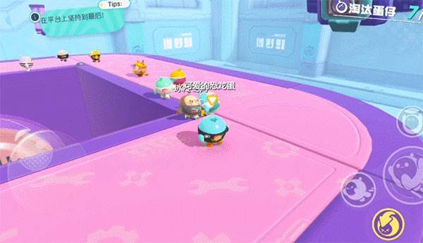 除了最基本的跑跳飞扑以外,我们还可以使用一个类似技能的“滚蛋”模式。激活后蛋仔就会变成圆球向前滚动,速度快,可跳跃,但是碰撞后会发生较大的反弹,所以建议大家在障碍物不多的时候使用。比如竞速赛中的直道,或是用于快速通过机关地板。