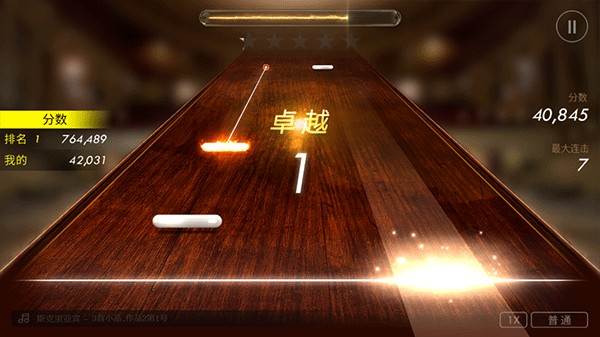 3、当有一连串快速闪光的音符出现时,跟随音符线性方向滑动屏幕。