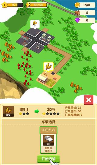 1、进入我要修马路最新版游戏后,当中会指出村庄生产的物品,玩家需要将物品送到城市中。