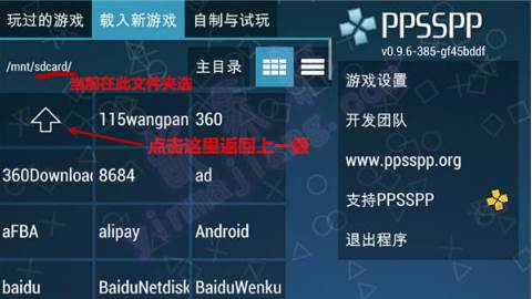 点击图标进入ppsspp模拟器,找到存放游戏的文件夹,默认在sdcard(内置卡,有些手机是sdcard1 sdcard2区分内外卡)