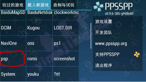 这样就看到存放在psp文件夹里的游戏镜像了,开始游戏前先设置一下模拟器,这个教程的设置针对低配置手机,高配手机可以根据情况适当修改某些选项。点击“游戏设置”