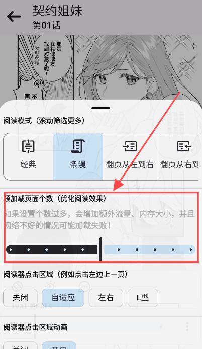 2、设置页面中找到预加载页面个数,调整到需要的页数即可,其他项目大家可以根据需求选择调整