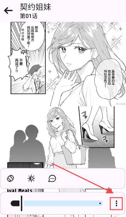 1、在漫画阅读界面,点击屏幕,点击右下角三个点按钮,进入设置页面